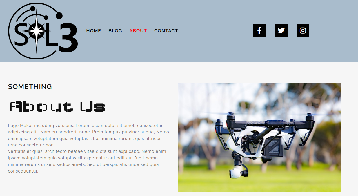 Drones have been a hobby of mine from the beginning, so it was a lot of fun designing this page. Unfortunately, this page was never finished or used, but it still counts as experience and something I leared from.